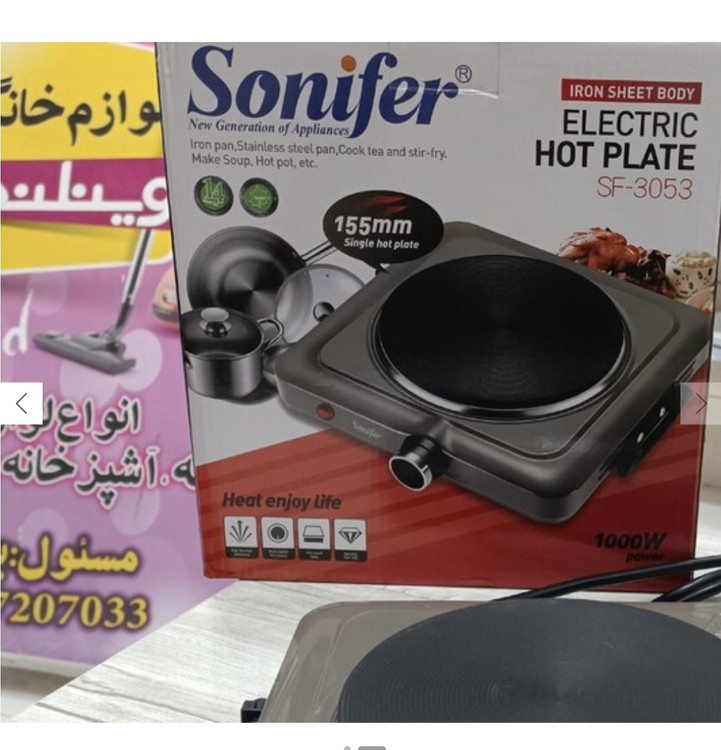اجاق برقی سونیفر مدل SF-3053 ✨توان مصرفی 1000 وات ✨دارای ترموستات تنظیم دما ✨جنس بدنه : ورق آهن بسیار مقام ✨جنس صفحه گرم کننده: چدن با کیفیت بالا ✨قابلیت گرم نگهدارنده ✨دارای پایه ضد لغزش و دستیگره ضد حرارت برای جا به جایی راحت ✨قابل استفاده در منزل، محل کار و هر مکانی که امکان استفاده از برق شهری باشد. ✅تضمین کیفیت، اصالت و قیمت کالا