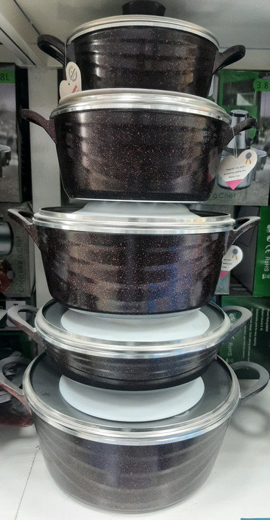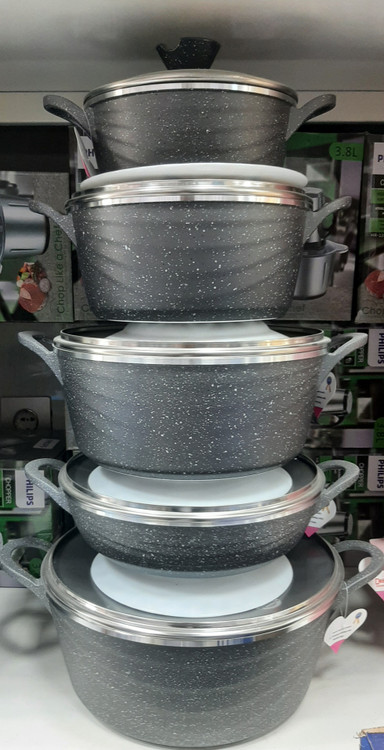 سرویس قابلمه 17 پارچه دسینی مدل 5030 در3رنگ مختلف طوسی . زرشکی . مشکی که شما میتونید رنگ مورد نظر خورا داخل توضیحات بنویسید از جنس دایکاست آلمینیوم (چدن) ذخیم بوده. و با طراحی ویژه قسمت تحتانی ظروف (شعله پخش کن) که باعث میشود حرارت کاملا یکدست در بین تمام نقاط این ظروف پخش شود. پوشش داخلی و بیرون این ظروف از جنس گرانیت سه لایه نچسب میباشد. این پوشش گرانیتی بسیار مقاوم بوده و این موضوع باعث میشود که چسبندگی در این ظروف به حد صفر برسد به طوری که طبخ غذا با کمترین میزان روغن صورت پذیرد. به جهت استفاده از گرانیت در پوشش خارجی این سرویس در برابر حرارات کاملا مقاوم میباشد به صورتیکه کدر نمیشوند.