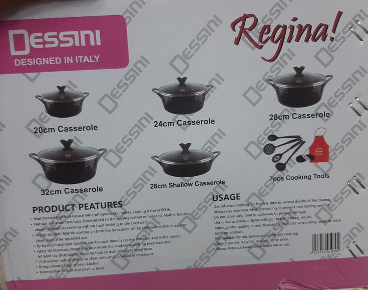 این محصول 17 پارچه به ترتیب در ابعاد 20 / 24 / 28 دو عدد و 32 سانتی متری تولید میشود. کشور مبدا شرکت دیسینی ایتالیا هست و در نماینگی کشور چین با همان کیفیت کشور مبدا تولید میشود.