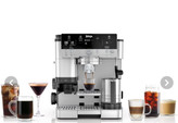 بدنه نقرهای رنگ این دستگاه با طراحی شیک و مدرن، جلوهای خاص به آشپزخانه شما میبخشد. صفحهنمایش بصری و دکمههای کاربردی، استفاده از دستگاه را آسانتر میکند. همچنین، دو نازل قهوه، امکان تهیه همزمان دو فنجان اسپرسو را فراهم کرده است.