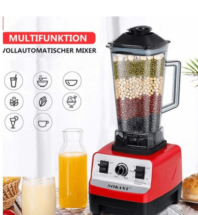 | توضیحات | - جنس: بادوام + پلاستیک - نام تجاری: SOKANY - مدل: SK-444 - قدرت: 4500 وات - رنگ اصلی: قرمز - ولتاژ: 220-240 ولت - ظرفیت: 2000 میلی لیتر - سرعت: 7 سرعت - تیغه: 6 تیغه |